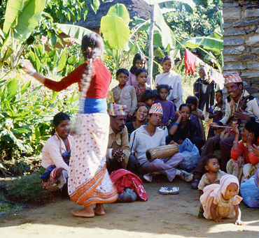 लौ हेर ! दुइदिन यता नआ'को त गाम्लेहरले नयेँ चौतारो बनाइभ्या'चन । एऽऽ अइले ढुँगेसाँउमा खाम्ला बदम किनेर, लाम्ला माया चिनेर ! चौतारीको छेऊमा ठुलै र'च रमिता आम्न पाइनम् हामी ता !