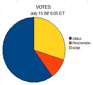 Prachand is hunter for nepali people blood. He always drink red people blood, he already hunting 13000 people, so i think Giraja is better then bloody pranchnda.