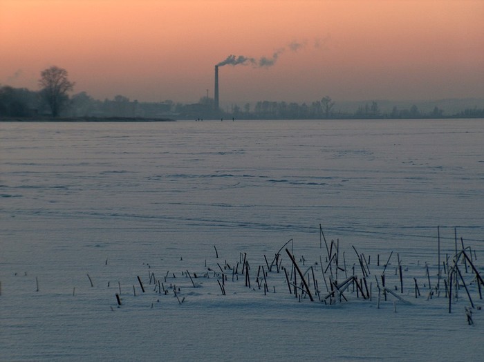 Walk way, from frozen lake to village.