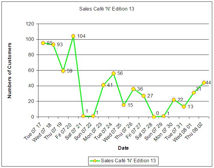 Sorry Figure here!! Figure Only one: The business rate Café N # 13 on each day since its opening on 17th July