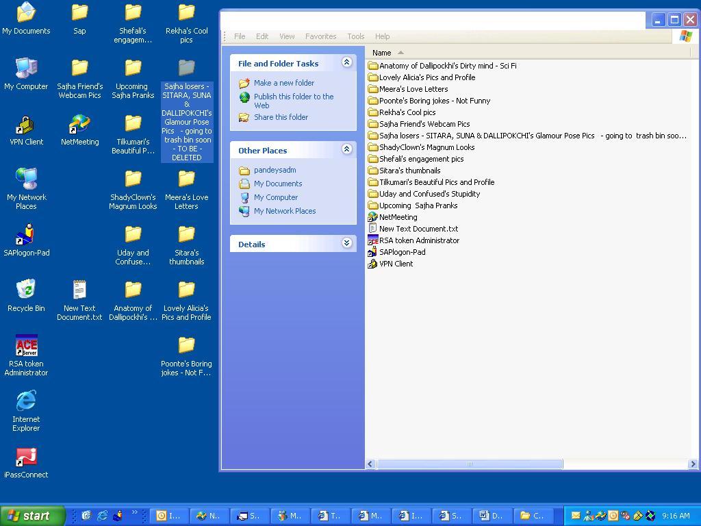 We had a pretty good thread a while ago about the same topic....and in my opinion ppl had a good time sharing their coolest or crapiest desktop/wallpaper. everytime...i look @ my desktop....memories pops in my mind....i just like to stare @ me... :S..:( *i need a hug* would u like to share your desktop??? ;) and ....if u hav any comment..... *i just lop comment...*:p pease ;ut