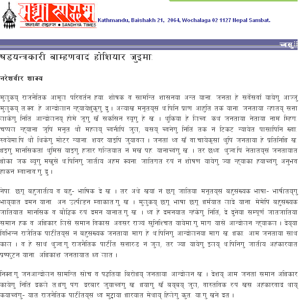 * This is a Royalist conspiracy to bring about ethnic disharmony in Nepal - Right, everything that challenges Bahunist domination is a conspiracy of some sort.