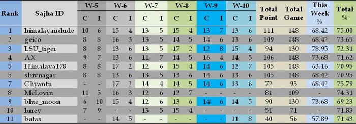 **Week 10 Results**