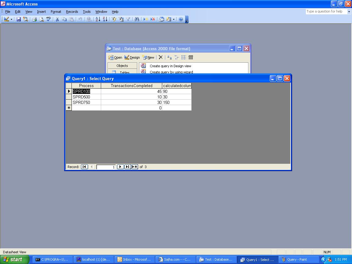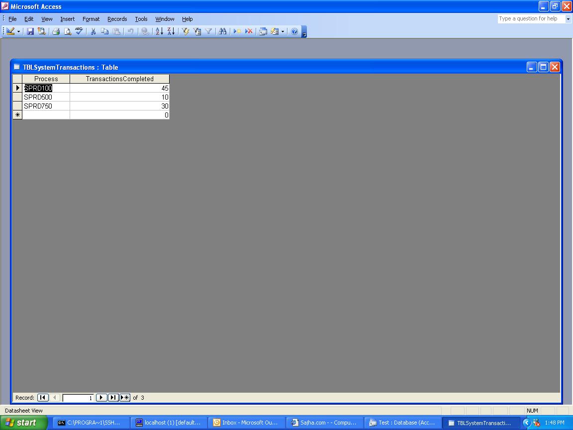 One more thing, I have 4 fields in the table: UserID Process TransactionsCompleted Date Would that be a problem that I'm not including the 2 other column names in the SQL (UserID and Date)?