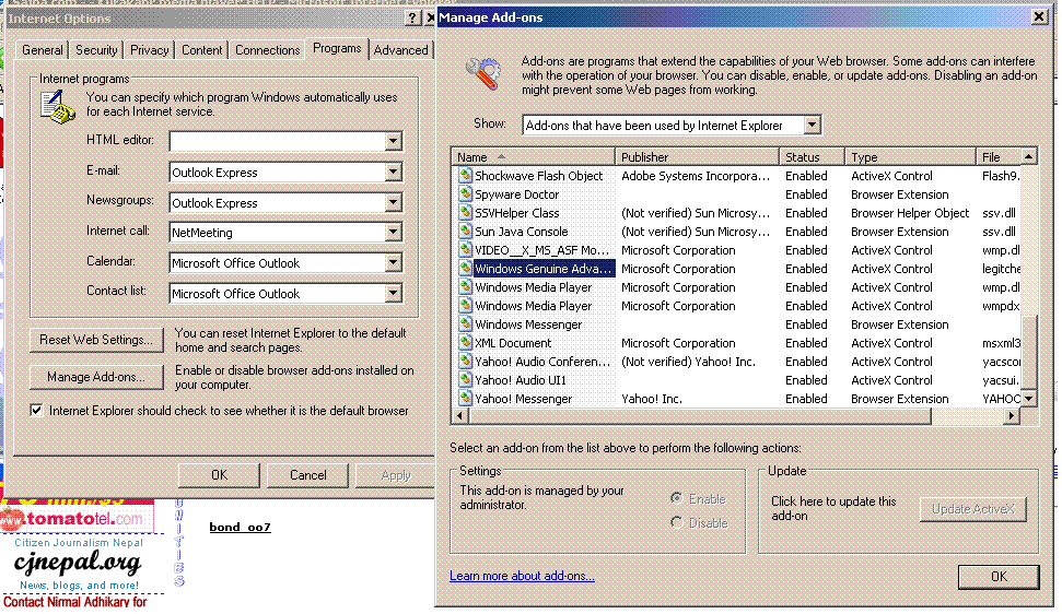 Just Disable the windows addon that checks your genuine windows. Internet EXplorer>Tools>Options> Manage Addons> Microsoft Genuine advantage addon Disable it and restart Ynjoooyy