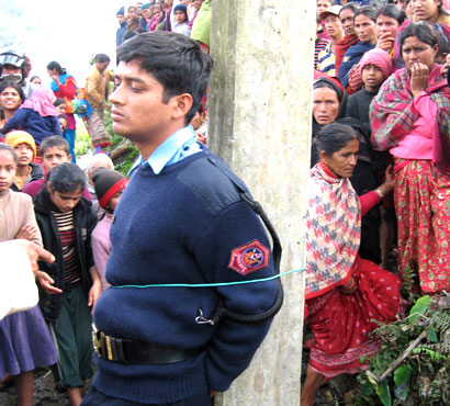 माघ २१ गते पोखराबाट १० कि.मि. पूर्व लेखनाथ नगरपालिकाको शिशुवा प्रहरी चौकीका र्सइलाई गाउलेले बिजुलीको पोलमा बाधेका थिए । आडैमा प्रहरी नायब उपरिक्षकको कमाण्डमा सयौ प्रहरी रमिते भएका थिए । गाउले कुर्ली कुर्ली गाली गर्दै थिए ।