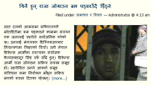 NOTE: The opinions here represent the opinions of the individual posters, and not of Sajha.com. It is not possible for sajha.com to monitor all the postings, since sajha.com merely seeks to provide a cyber location for discussing ideas and concerns related to Nepal and the Nepalis. Please send an email to admin@sajha.com using a valid email address if you want any posting to be considered for deletion. Your request will be handled on a one to one basis. Sajha.com is a service please don't abuse it. - Thanks.