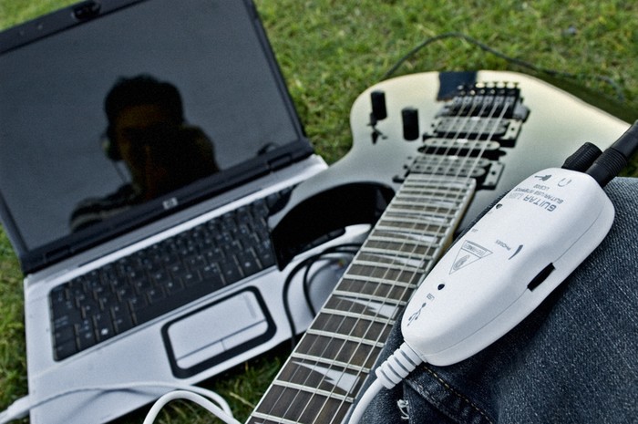 The fun part is you can take your electric guitar, USB guitar link and your headphones and your laptop anywhere and fire up your guitar rig.