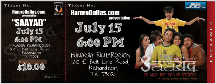 HamroDallas.com brings you yet another Nepali Movie "SAAYAD" featuring Sunil Rawal, Samyam Puri, Wilson Bikram Rai, and Jharana Thapa.